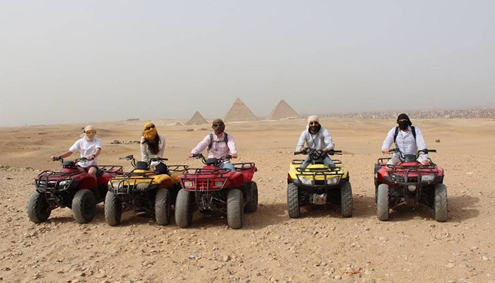 Quad Biking Egypt Tour at the desert of Giza Pyramids is quite simply the most exciting adventure way to discover the ancient wonders of Egypt. taking you to places where most tourists never get to see. riding through the desert is a thrilling experience it will make your Holidays in Egypt unforgettable with Amazing Pictures of you behind the panoramic view of the Pyramids.